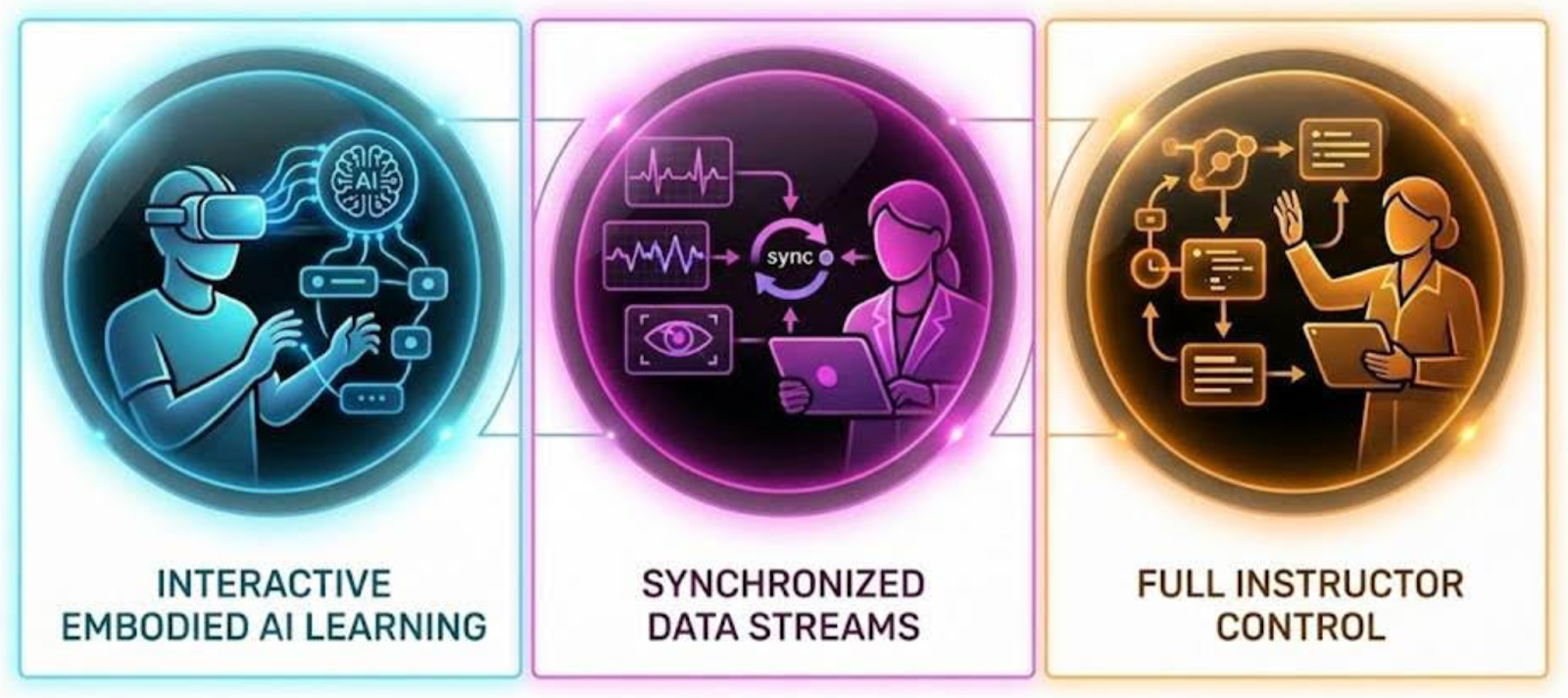 Students benefit from interactive, embodied, AI-supported learning experiences. Researchers gain synchronized behavioral, physiological, and neural data streams. Instructors retain full control over lesson flow and experimental design.