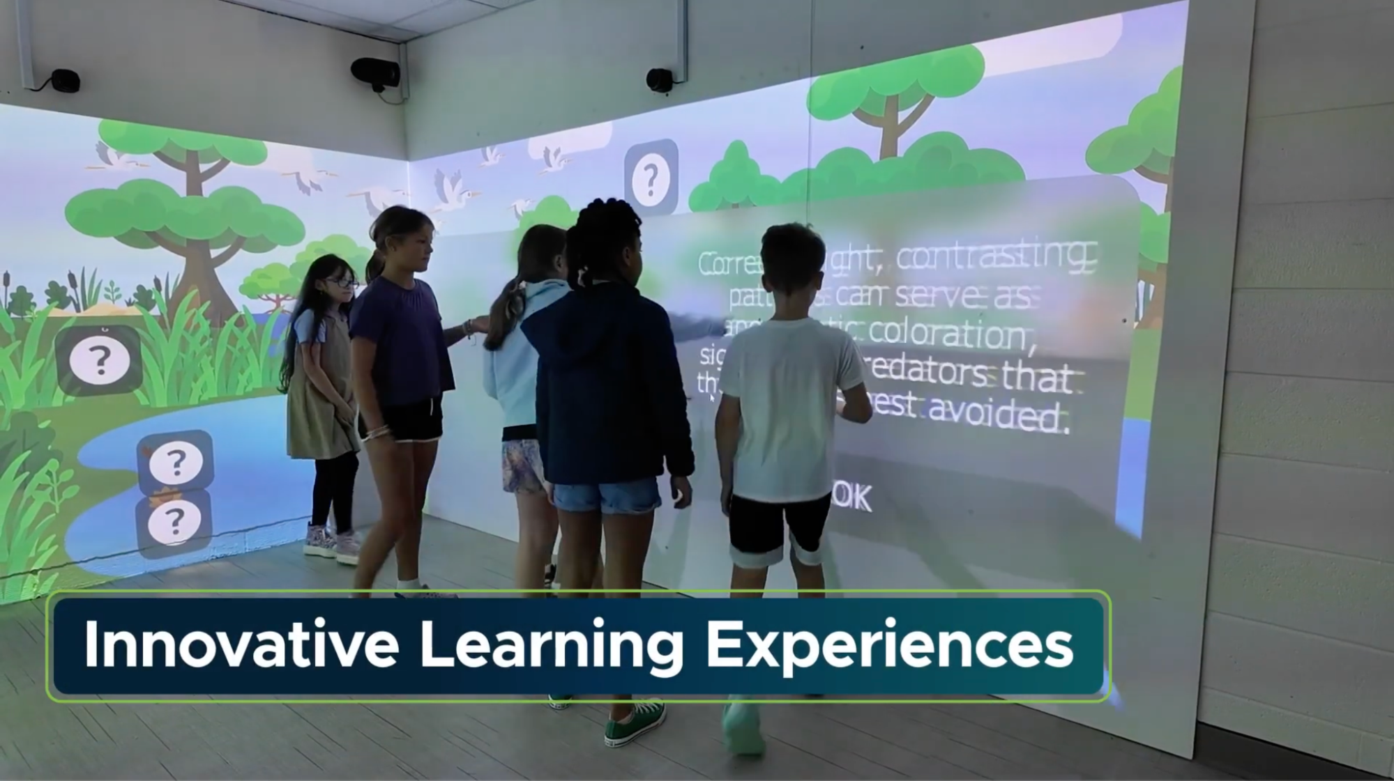 PowerUpEDU content has students up on their feet - moving, collaborating, and interacting with responsive walls in shared, room-scale simulations. Lessons feel active and playful rather than passive, turning the room itself into the learning tool.