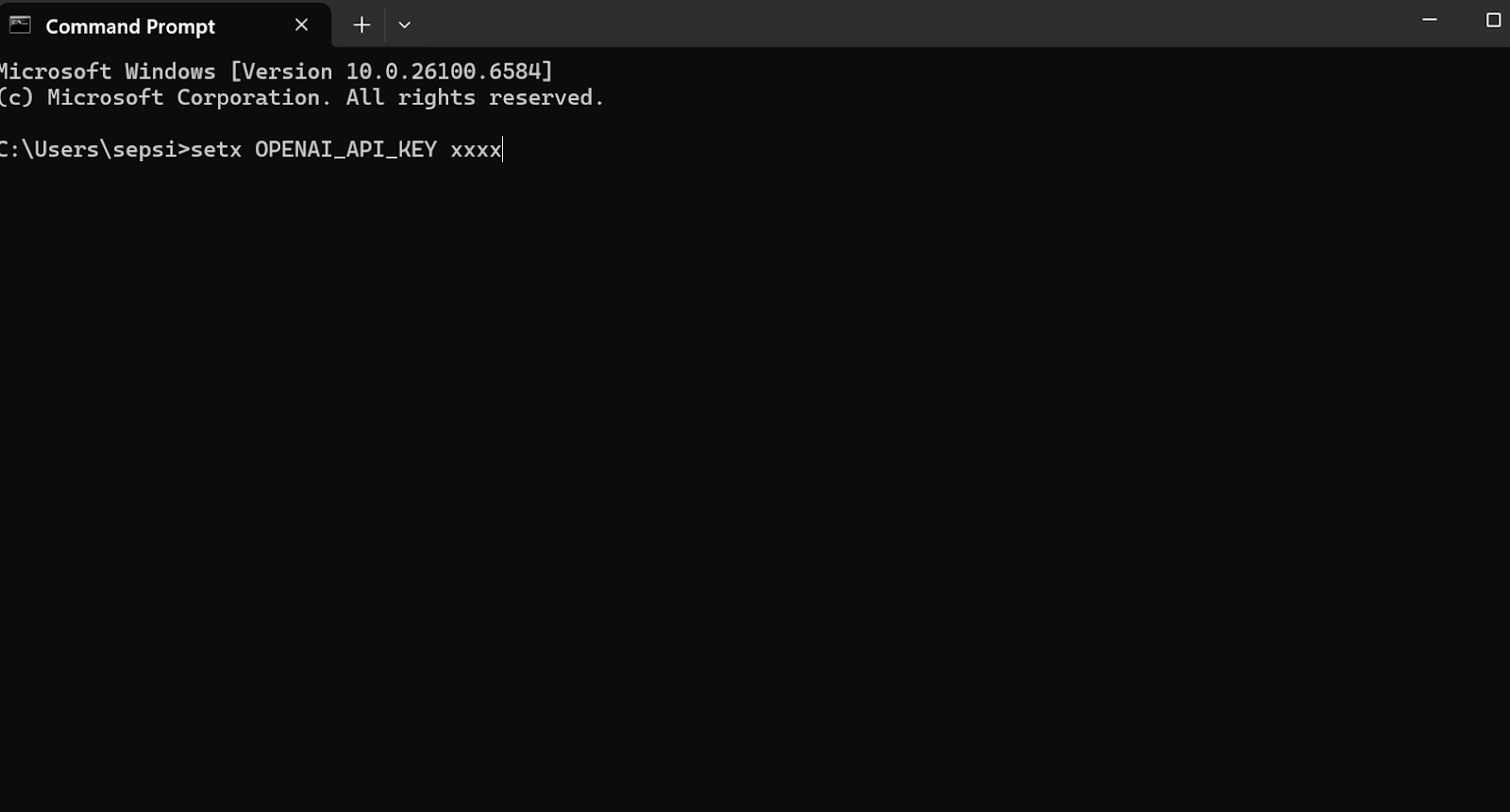 Type CMD in Windows search to open a command line window and enter (depending on which api key you are using):