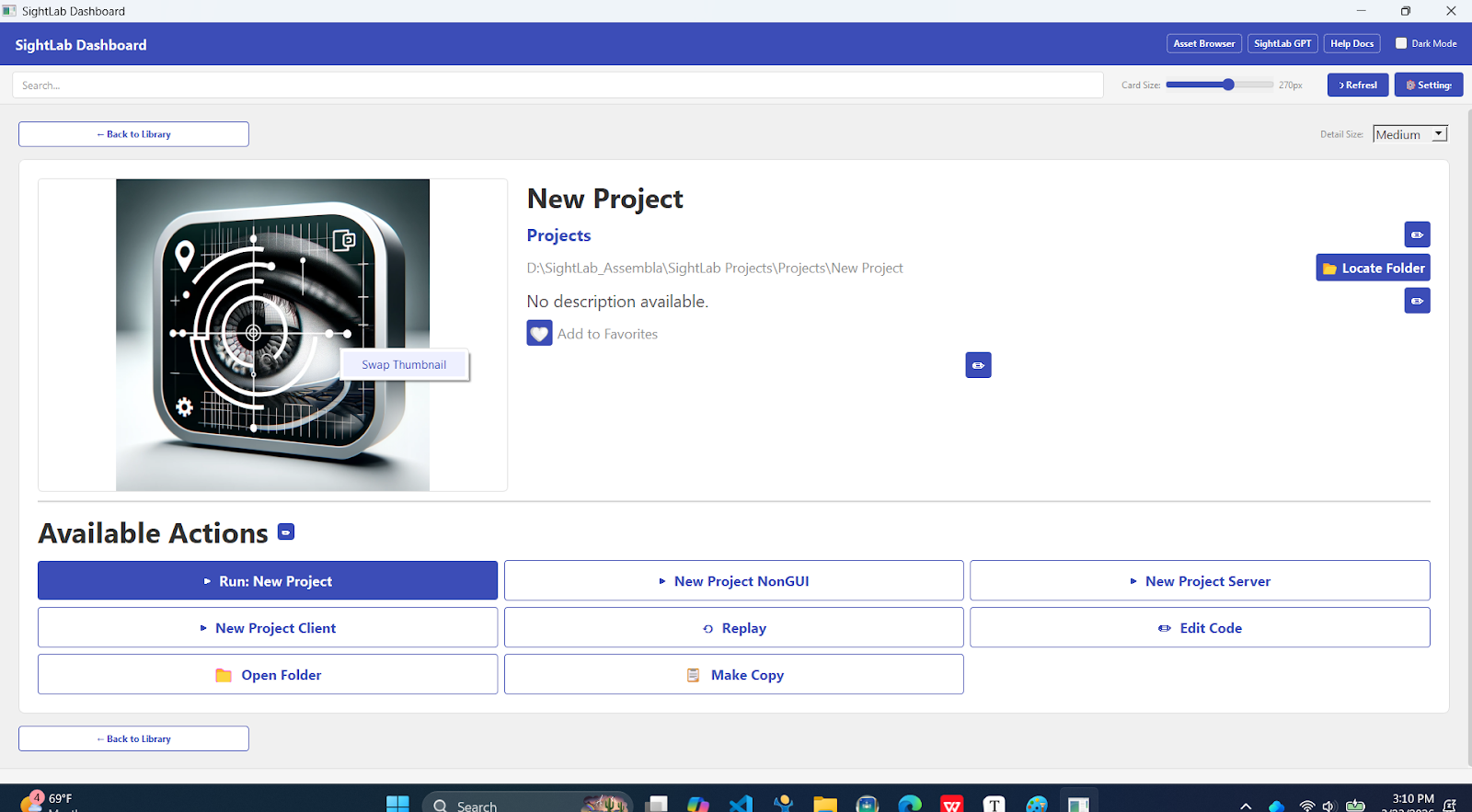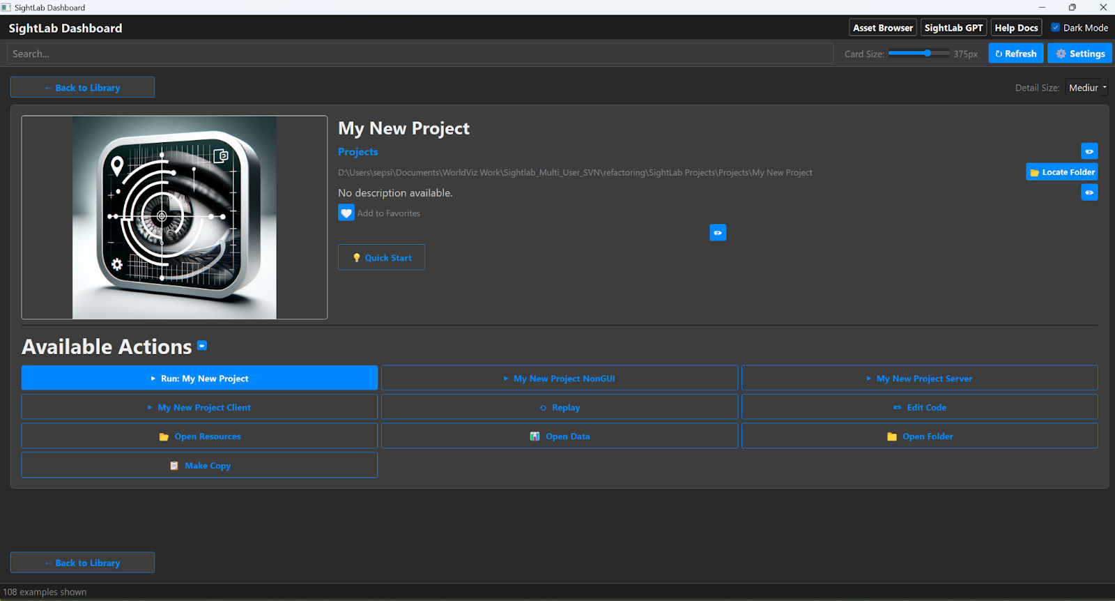 This makes the dashboard useful both as a launcher and as a lightweight project manager. You can stay in one interface for most of the day-to-day tasks involved in working with SightLab content.